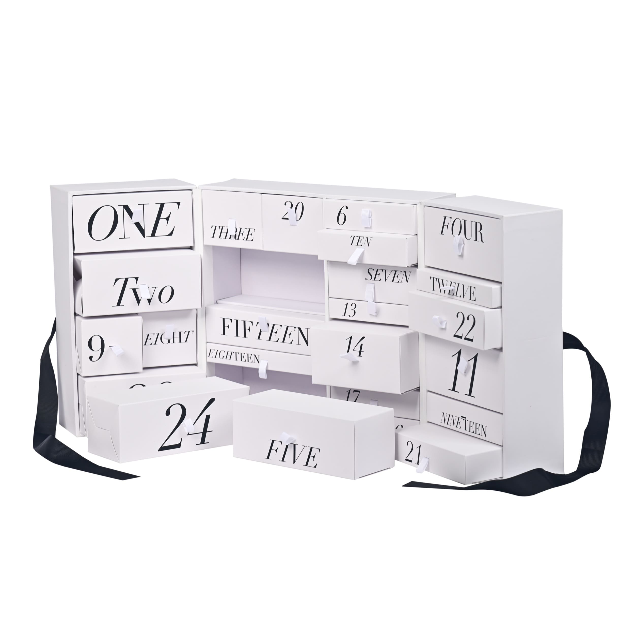 Premium Custom Weiße Schönheit Advents kalender Box mit Band