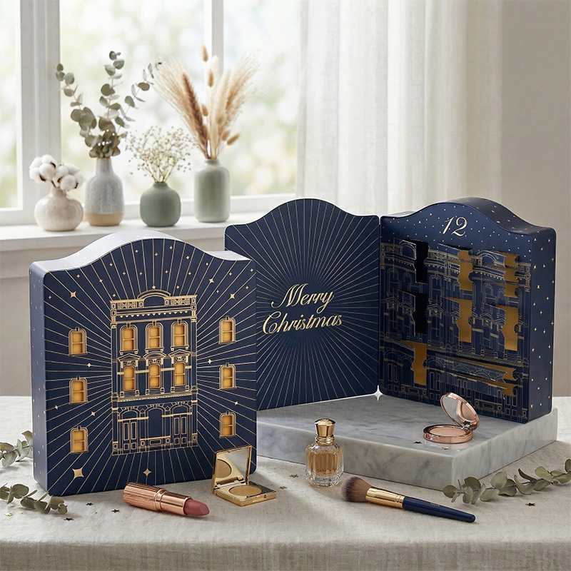Boîtes de maquillage calendrier de l'avent personnalisé avec dessin architectural