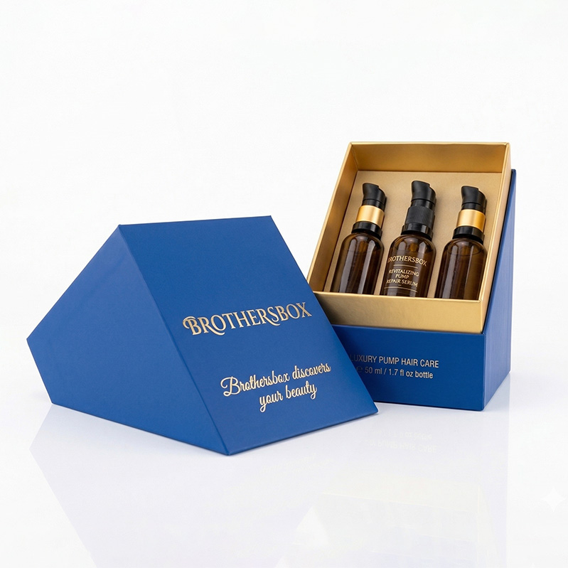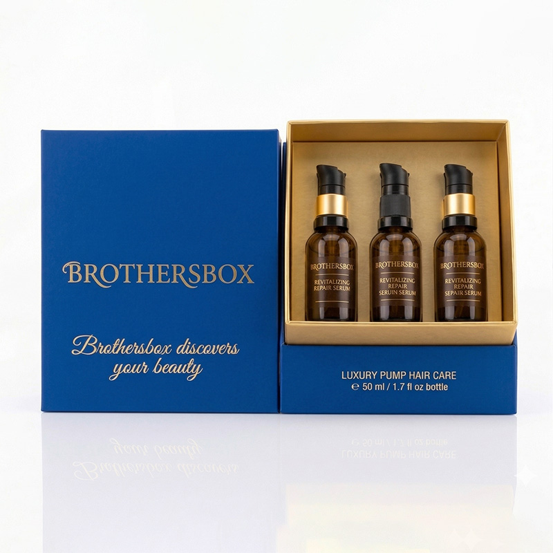 Découvrez notre boîte d'emballage unique de soins capillaires sur mesure pour le sérum de réparation. Parfait pour les présentoirs de salon haut de gamme, les étagères de vente au détail et les coffrets cadeaux de beauté haut de gamme. Brothersbox assure une expédition sécurisée pour les bouteilles en verre tout en attirant les acheteurs B2B et boutique.