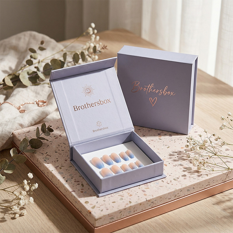 Boostez vos ventes saisonnières avec des coffrets cadeaux magnétiques personnalisés pour les clous à presser. Brothersbox offre des designs entièrement personnalisables qui transforment vos ensembles d'ongles en cadeau parfait pour toute occasion.